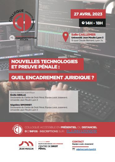 Organisée par le Centre de droit pénal, Faculté de droit, Université Jean Moulin Lyon 3 sous la direction scientifique de Emilie Sibelle et Ségolène Simonnet, doctorantes du centre de droit pénal, équipe de recherche Louis Josserand