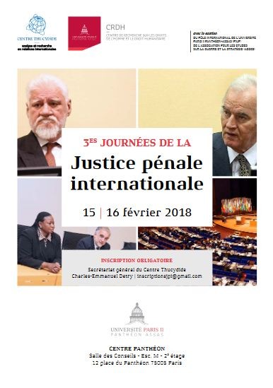 Charles-Emmanuel Detry, « Troisièmes journées de la Justice pénale internationale », le 15 février 2018