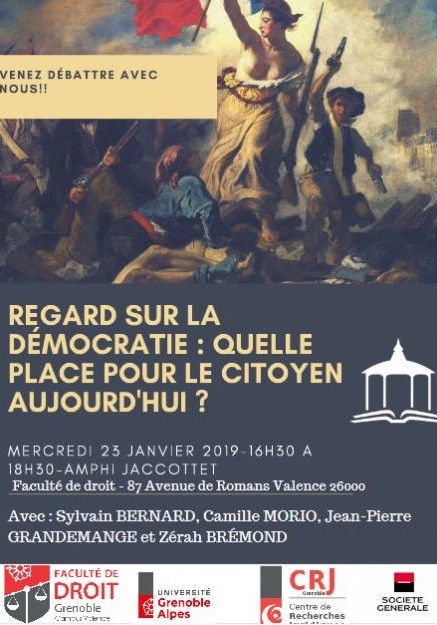 Jean-Pierre Grandemange, Sylvain Bernard, Camille Morio, Zérah Bremond, « Regard sur la démocratie : quelle place pour le citoyen aujourd'hui ? », Regard sur la démocratie : quelle place pour le citoyen aujourd'hui ?, Valence, le 23 janvier 2019
