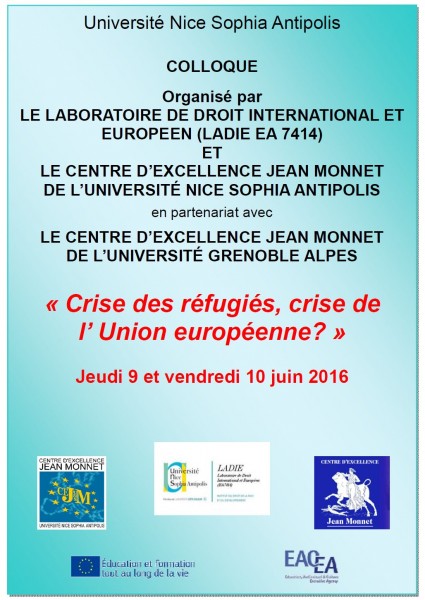 Organisé par le Laboratoire de Droit international et Européen (LADIE EA 7414) et le centre d'excellence Jean MONNET de l'UNS, en partenariat avec le centre d'excellence Jean MONNET de l'Université Grenoble Alpes.