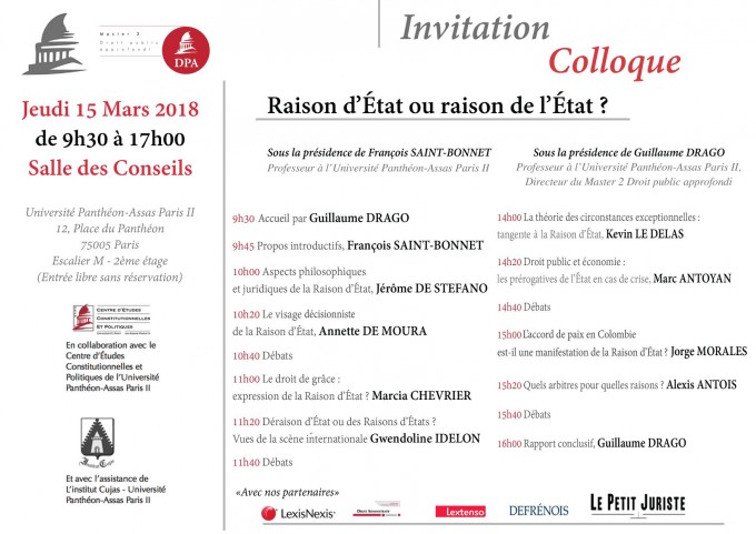 Marcia Chevrier, « Droit public et raison d'Etat », le 15 février 2018