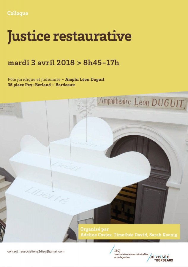 Colloque organisé par le Centre de Recherche sur la Justice Pénale et Pénitentiaire (CRJ2P/IFTJ), Université de Pau et Pays de l'Adour sous la direction scientifique de Jean-Paul Céré, Joana Falxa et Ludivine Grégoire