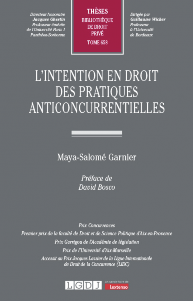 Maya-Salomé Garnier, L'intention en droit des pratiques anticoncurrentielles, LGDJ un savoir-faire de Lextenso, 2025, Bibliothèque de droit privé, 623 p.
