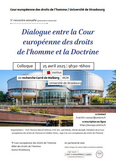 5e rencontre organisée par l'Institut de recherche Carré de Malberg sous la direction scientifique de Prof. Florence Benoit-Rohmer, Prof. Ass. Ledi Bianku, Marko Bosnjak, Président de la Cour européenne des droits de l’homme et Frédéric Krenc, Juge à la cour européenne des droits de l’homme