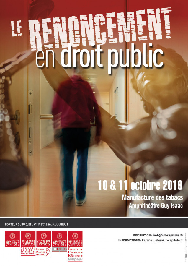 Le renoncement est un phénomène courant que l'on peut régulièrement constater dès lors qu'une personne privée ou publique choisit de ne pas entreprendre telle ou telle démarche qui s'offre à elle, de ne pas effectuer telle ou telle action ou même tout simplement change d'avis. En tant que tel il ne s'agit pas d'une notion juridique à moins qu'il ne se matérialise sous la forme expresse d'une renonciation, largement théorisée en droit privé mais peu étudiée en droit public. Si le renoncement et la renonciation ne sont ni l'un ni l'autre très familiers du droit public, le renoncement dépasse, quant à lui, très largement la notion de renonciation tout en l'englobant et suscite, à ce titre, de nombreuses et légitimes interrogations afin de mieux cerner la place que le droit public laisse au renoncement. Ce colloque a pour ambition de déterminer quelles sont les spécificités du renoncement en droit public afin de préciser en quoi il se distingue de la renonciation telle qu'elle a pu être formalisée en droit privé. À cet égard, si le renoncement n'apparaît pas comme spécifique au droit interne, il conviendra de s'interroger sur l'existence ou non d'un encadrement du renoncement mais aussi sur les formes qu'il peut ou pourrait revêtir. Une attention particulière sera également portée aux modalités du renoncement qu'il s'agisse, d'une part, du renoncement par l'individu en se demandant ici s'il constitue toujours un acte de volonté et s'il ne peut pas le cas échéant être présumé, et, d'autre part, du renoncement des personnes publiques, qui se matérialise de maintes façons. Ces diverses modalités de renoncement et les conséquences qui peuvent s'y attacher suscitent quant à elles d'autres interrogations portant sur les limites qui peuvent peser sur le renoncement au regard du droit public