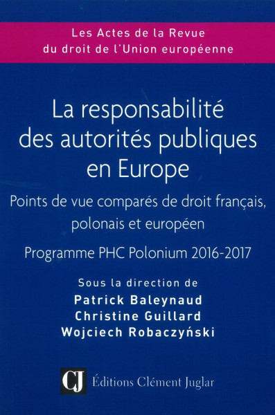 Christine Guillard, Patrick Baleynaud, Wojciech Robaczyński (dir.), La responsabilité des autorités publiques en Europe: points de vue comparés de droit français, polonais et européen, Clément Juglar, Éditions juridiques et économiques, 2019, Les Actes de la Revue du droit de l'Union européenne, 254 p.