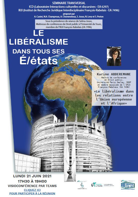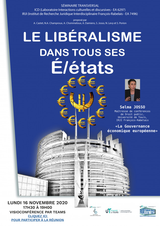 Séminaire transversal mensuel sur "Le libéralisme dans tous ses E/états" proposé par les laboratoires ICD (Interactions culturelles et discursives - EA 6297) et IRJI (Institut de Recherche Juridique Interdisciplinaire - EA 7496) de l’Université de Tours
