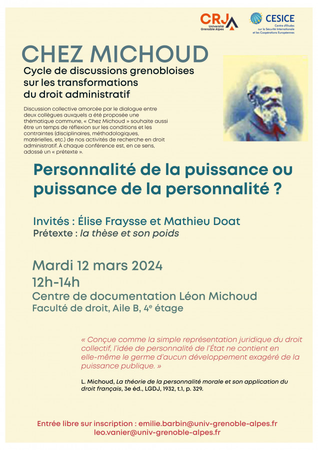 Mathieu Doat, Elise Fraysse, « Personnalité de la puissance ou puissance de la personnalité ? », cycle de conférences Chez Michoud, Saint-Martin-d'Hères, le 12 mars 2024