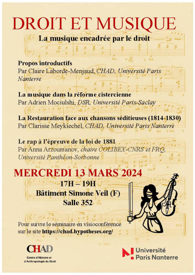 Première séance du séminaire Droit et musique organisé par le CHAD, Université Paris Nanterre.