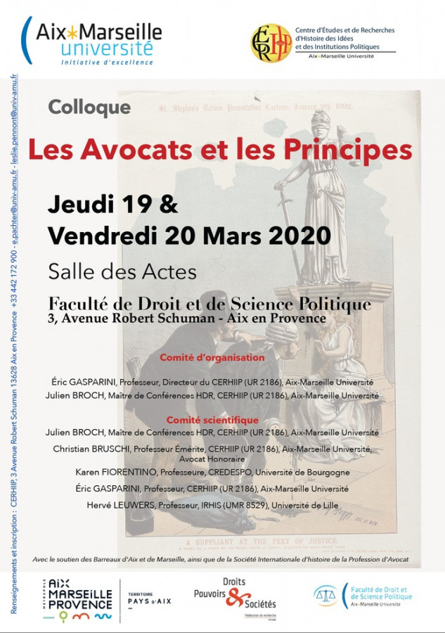 Colloque organisé par le CERHIIP (Aix-Marseille Université), avec le soutien des Barreaux d'Aix et de Marseille, ainsi que de la Société Internationale d'histoire de la Profession d'Avocat.