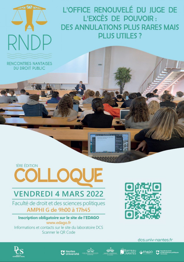 Colloque organisé par le laboratoire DCS, Nantes Université / CNRS, dans le cadre des "Rencontres Nantaises du Droit public" avec le soutien de la Faculté de droit et de sciences politiques de Nantes Université, l’Ecole des avocats du grand ouest (EDAGO), le Barreau de Nantes, le Tribunal administratif de Nantes et la Cour administrative d’appel de Nantes.