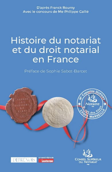 Franck Roumy, Philippe Caille, Histoire du notariat et du droit notarial en France, Defrénois et un savoir-faire de Lextenso, 2024, 117 p.