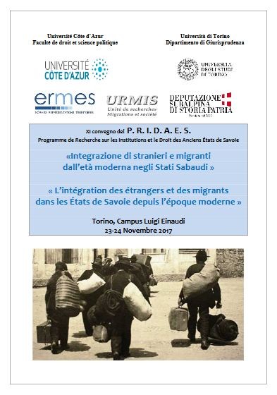 Claire Courtecuisse, « L'intégration des Piémontais par un double droit du sol obligatoire ? Divergences d’interprétation juridique en Isère dès 1832 », XI convegno del P. R. I. D. A. E. S. (Programme de Recherche sur les Institutions et le Droit des Anciens États de Savoie) : « L’intégration des étrangers et des migrants dans les États de Savoie depuis l’époque moderne », Turin Italy, le 23 novembre 2017