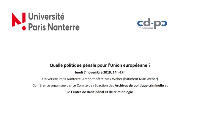 Organisé par le Comité de rédaction des Archives de politique criminelle et le Centre de droit pénal et de criminologie, UFR Droit et science politique, Paris-Nanterre