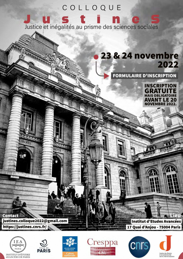 Colloque de clôture du programme JustineS – Justice et inégalités au prisme des sciences sociales, organisé par le Laboratoire Cresppa-CSU, organisé avec le soutien du Programme Emergence(s) de la Ville de Paris