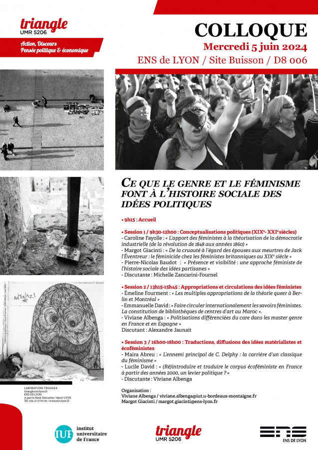 Journée d’étude organisée par l'UMR TRIANGLE et l'ENS Lyon, avec le soutien de l'IUF, sous la direction scientifique de Viviane Albenga et Margot Giacinti.