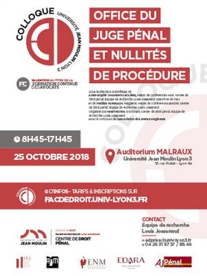 Organisé par Henri Payen, Doctorant, Centre de droit pénal, Équipe de recherche Louis Josserand, avec le concours de l’Association des Jeunes Magistrats.