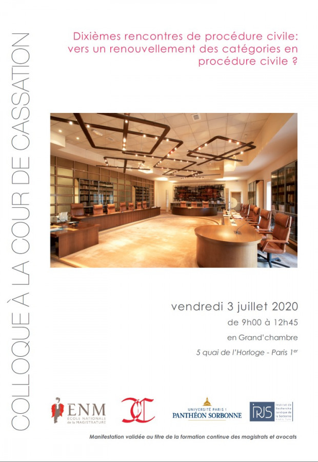 Initialement programmées le 3 avril, les Rencontres de la procédure civile sont organisées par l’IRJS, Paris 1 Panthéon-Sorbonne et la Cour de Cassation.